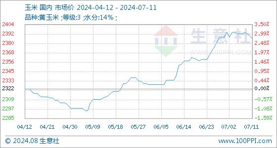 7月11日,生意社玉米基准价为2390.00元/吨,与本月初(2388.57元/吨)相比,上涨了0.06%。