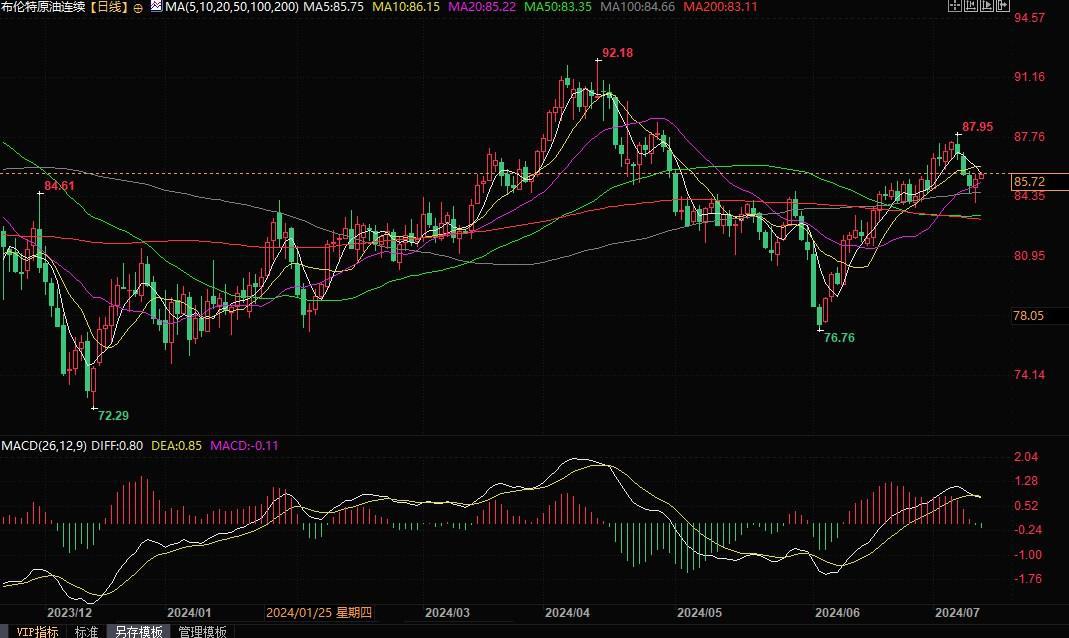 北京时间7月11日9:24,布伦特原油报85.73美元/桶
