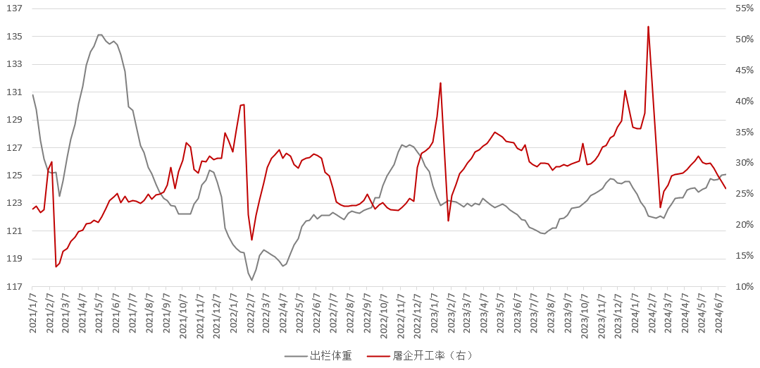 图2.5:出栏体重(kg)及屠企开工率(%)