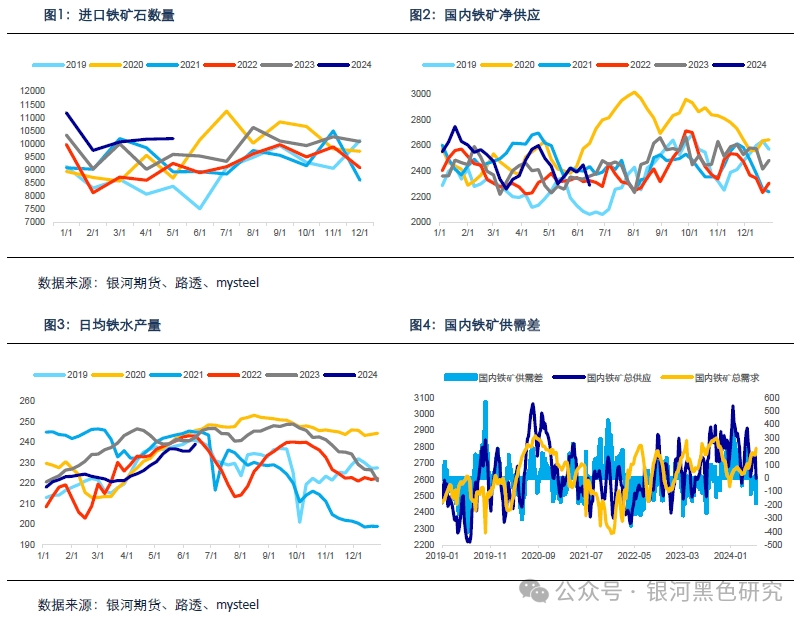 今年年初至今,铁矿石市场基本交易三次大的逻辑,一是春节之后由于终端建材需求同比大幅回落,同时资本空配黑色,导致铁矿石价格大幅下跌;二是4-5月份铁矿石价格在盘面超跌反弹、终端建材需求持续恢复以及宏观政策持续出台支撑价格大幅反弹,最高上涨至925元/吨;三是近期价格高位回调,更多的是宏观预期和资金减退,同时市场对铁矿供应端给予交到的权重,现货层面体现出来的是港口到港量维持高位、港口高库存持续较长时间,这一交易逻辑已经基本接近尾声。
