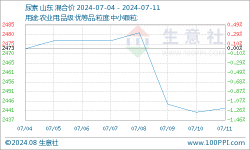 据生意社商品行情分析系统,截止7月11日,国内尿素市场参考均价为2443元/吨,较7月4日参考均价2477元/吨,国内尿素价格下跌幅度为1.37%。