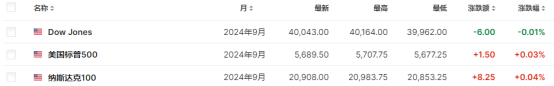 股市方面,道指期货、标普500指数期货、纳斯达克100指数期货一度收复当天跌幅转涨,截至发稿,道指期货微跌,标普500指数期货、纳斯达克100指数期货微涨。