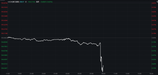 美元指数短线快速下挫,一度跌超0.7%,截至发稿仍跌超0.6%。