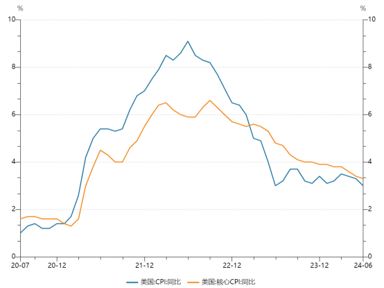 美国CPI和核心CPI走势(2020年7月至2024年5月)