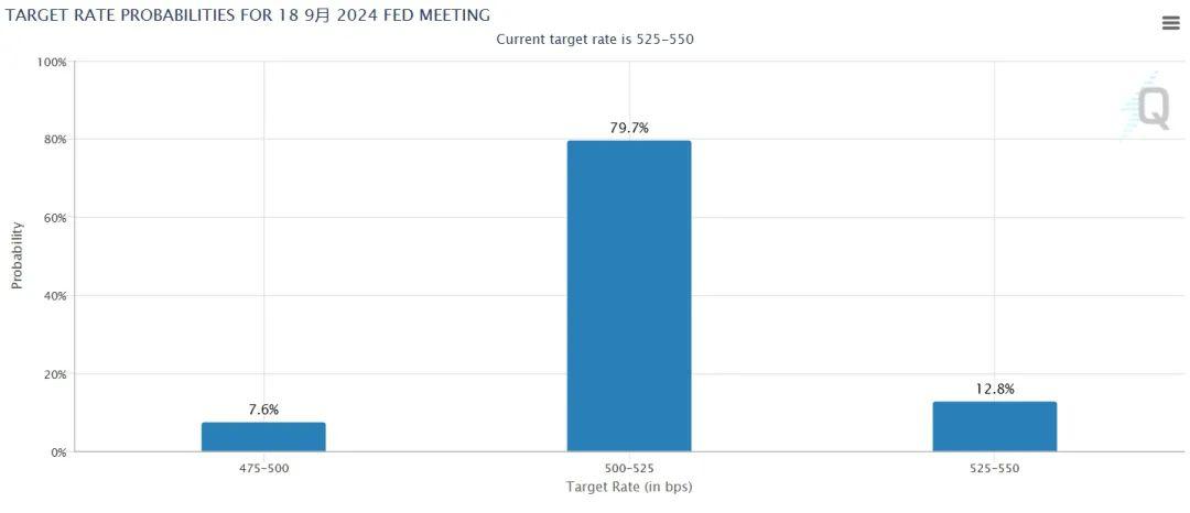 数据公布后,互换市场消化的年内降息幅度有所增加,交易员预计美联储年内第三次降息25个基点的可能性为25%。交易员亦提高了欧洲央行宽松预期,料9月将降息20个基点。CME的美联储利率观察工具显示,美联储在9月的会议上降息的可能性冲高至近90%,高于报告发布前预期的80%。