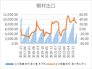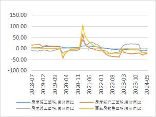 2024年以来房地产市场仍然面临压力,从1-5月份投资、销售、新开工、施工、竣工数据来看,依然处在深度负增长中,那么说明从销售回款到投资拿地再到新开工的负反馈尚未结束。在4月30日政治局会议明确的楼市政策导向下,以及5月17日“一揽子”新政的落地,市场信心得到了一定程度的提振。但由于尚未走出调整阶段,政策效应充分释放还需要一定时间。目前来看依然是用钢需求的最大拖累项。