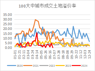 图7:100大中城市成交土地占地面积(万平米) | 图8:100大中城市成交土地溢价率(%) |