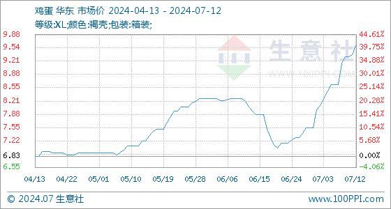 7月12日生意社鸡蛋基准价为9.38元/公斤