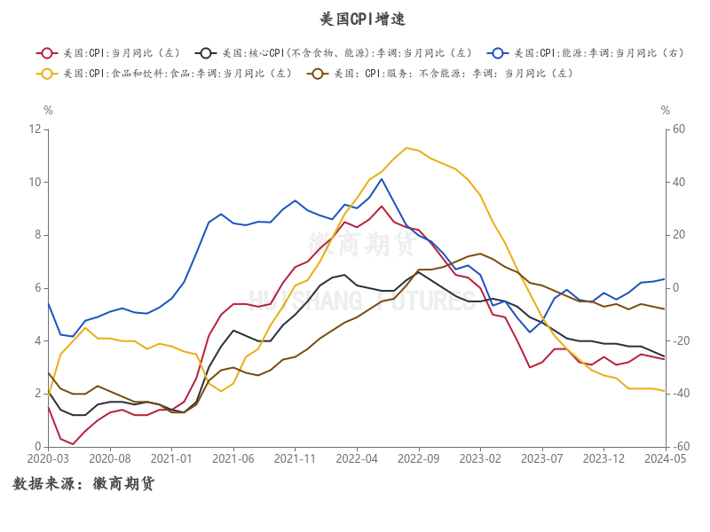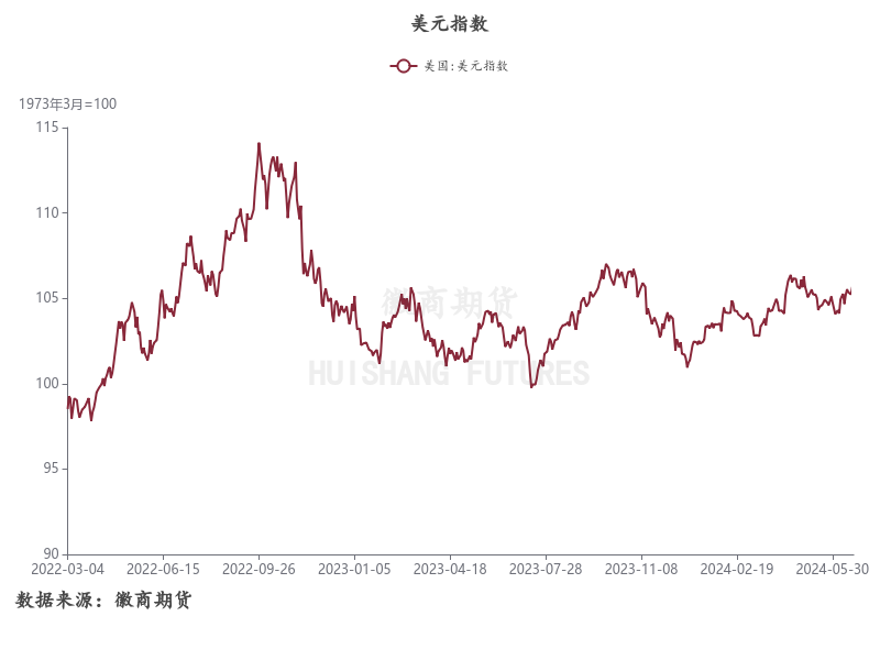 同时,6月12日美国劳工统计局公布的数据显示5月美国通胀数据超预期放缓,CPI同比增长3.3%,较前值和预期值3.4%小幅下降,CPI环比增长0%,低于预期0.1%,为2022年7月以来最低水平,但美联储在当周的货币政策会议上仍保持第7次会议,将联邦基金利率区间维持在5.25%- 5.50%的高位不变,并在更新的点阵图中下调了对今年降息次数的预期,或年内仅有1次,降息预期有所走弱。现阶段来看,前期宏观交易的预期逻辑已经无法继续演绎,宏观资金情绪偏向震荡观望,考虑到7月国内即将举行第二十届三中全会,需持续关注大会上发布的新政策是否会演变为新的宏观预期交易逻辑。
