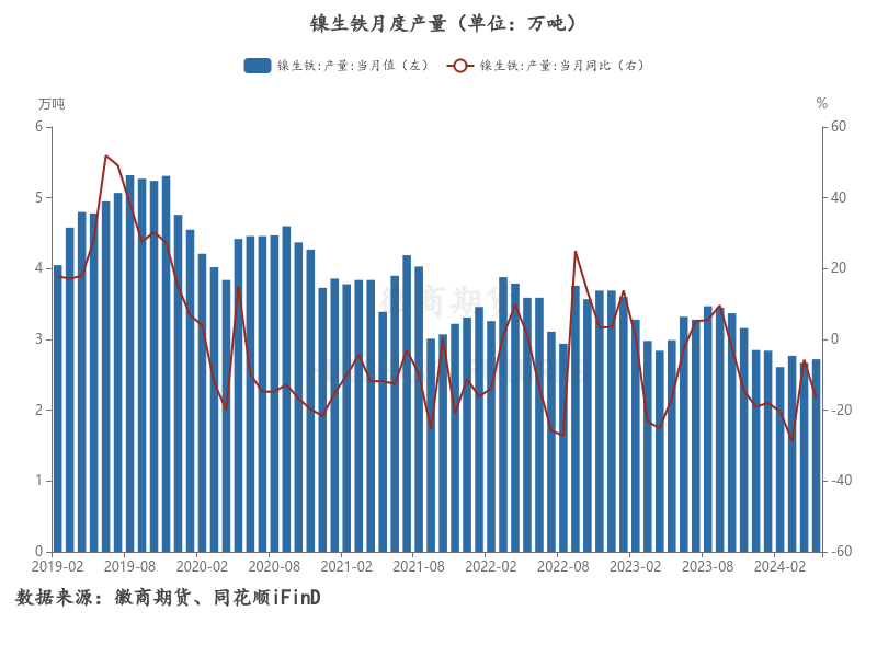 现阶段来看,根据印尼能源和矿产资源部(ESDM) 数据显示,当前已经批准470 家镍公司的三年期工作计划和预算(RKAB),核定镍矿石开采额度达到每年2.4亿吨。据Mysteel统计,2024年印尼镍产量将达到223.53万镍金属吨,镍矿需求量在2.44亿湿吨。当前公布的开采额度已接近于镍矿全年的需求量,因此后续随着印尼RKAB审批的持续放量,镍矿供应预计后续将呈现宽松预期。但考虑到当前正值印尼雨季,印尼多处矿区暂停了开采,同时前期部分已通过审批开采的镍矿也难以顺利发运,据MySteel估算,印尼镍矿当前的供应效率约为80%-85%,短期镍铁紧平衡的状态仍将持续一段时间,不锈钢短期的矿端原料成本支撑仍在,后市实际审批情况需要持续跟踪。