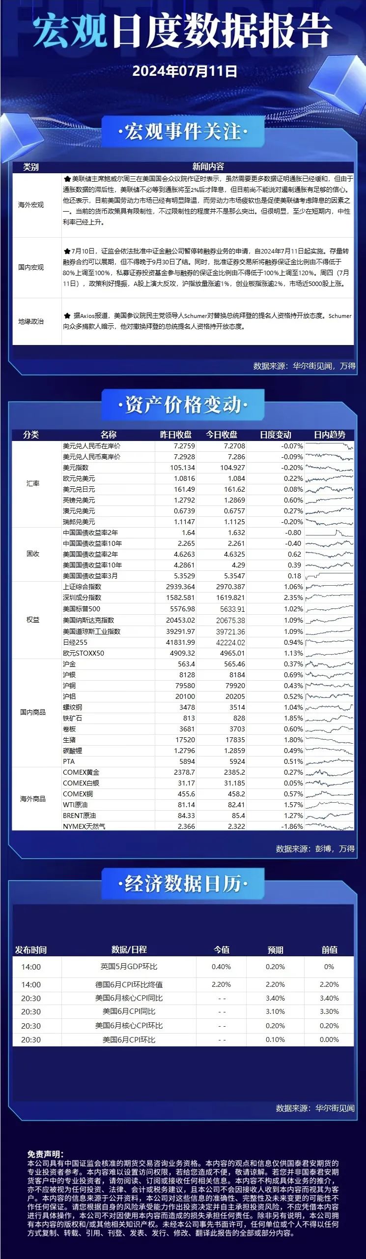 今日重点关注:MEG、乙烯、集运指数(欧线)。美国6月通胀全面超预期降温,年内降息预期大幅升温