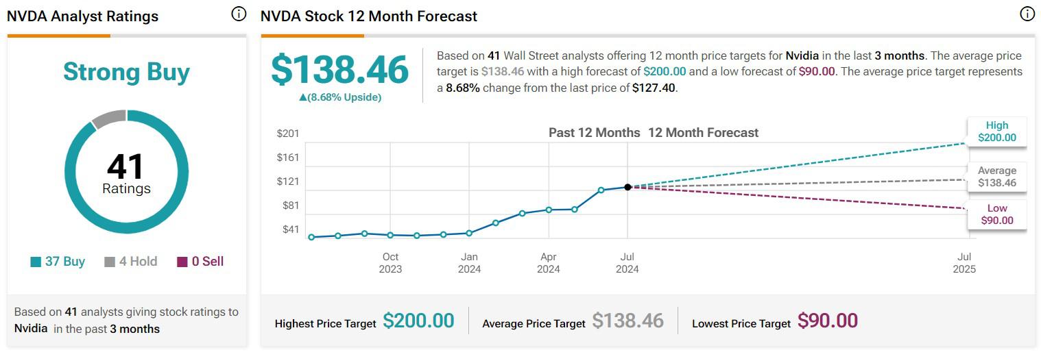 Tipranks汇编的英伟达预期数据显示,华尔街分析师的平均目标价高达138.46美元,共识评级为“强力买入”,所有覆盖英伟达的分析师中没有一位给出“卖出”这一消极评级。