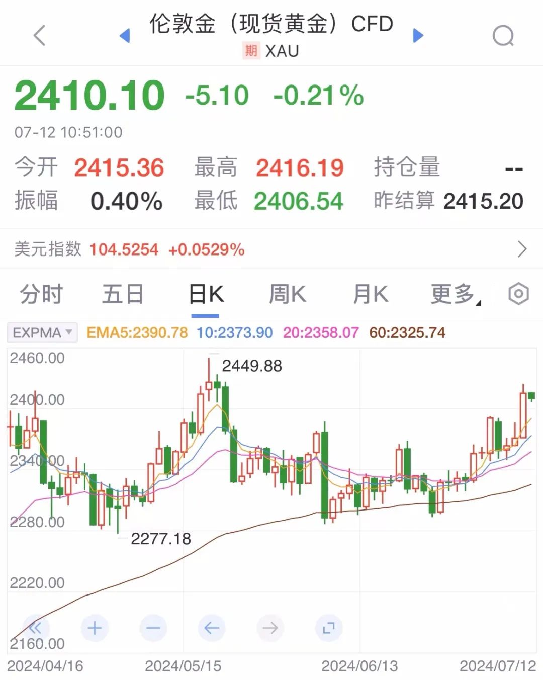 美国通胀在经历第一季度短暂回落停滞后,重新回归下降通道,叠加近期美国经济和劳动力市场纷纷出现放缓迹象,极大地提振了市场对美联储即将启动降息周期的预期。数据公布后,市场对美联储9月降息的预期急剧攀升,几乎触及90%的高点,国际金价随之飙升,伦敦金价格成功突破2400美元的关键心理大关。