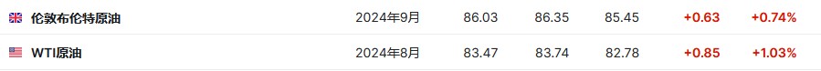 3.截至发稿,WTI原油涨1.03%,报83.47美元/桶。布伦特原油涨0.74%,报86.03美元/桶。
