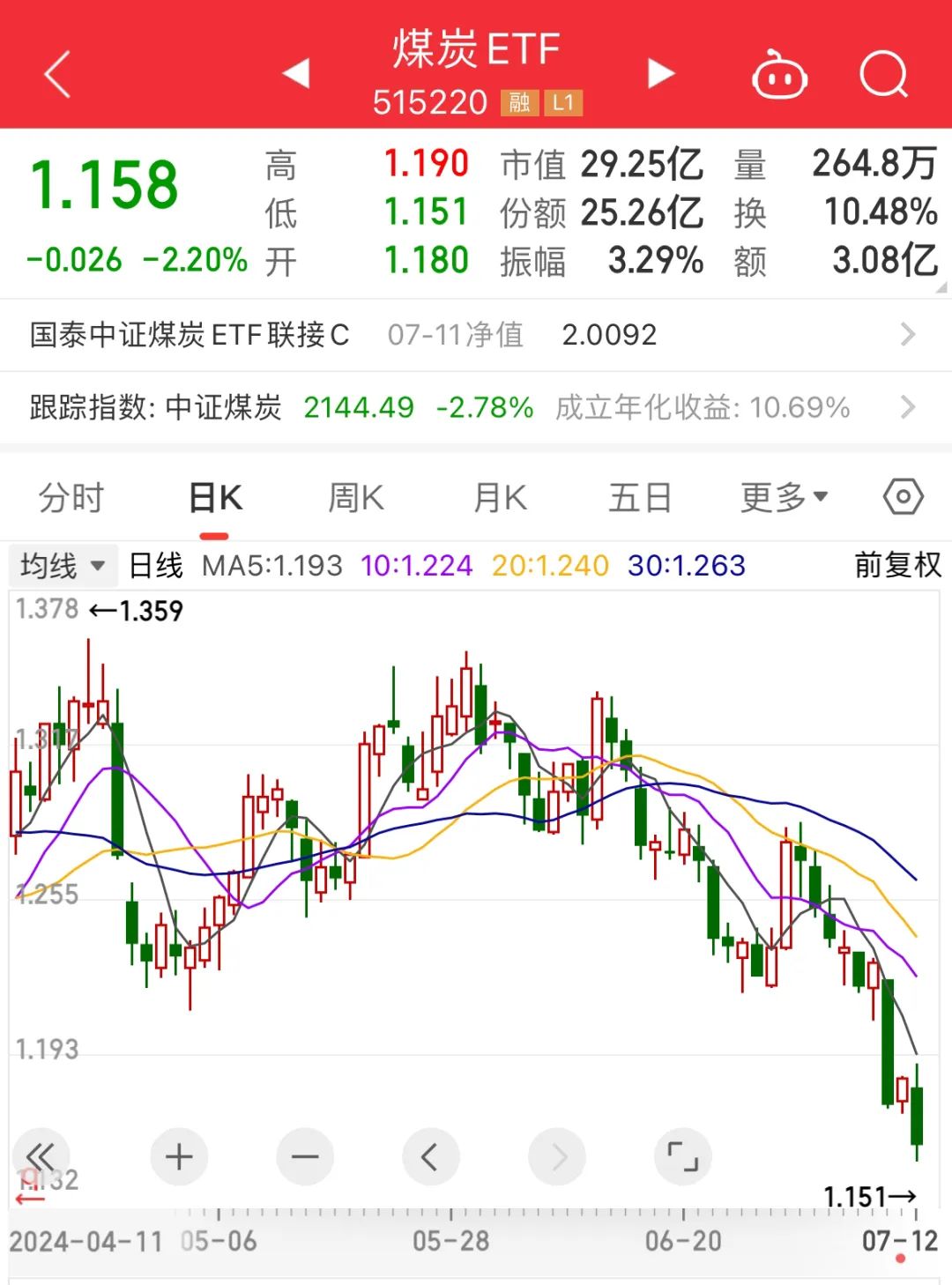 二级市场上,煤炭板块有所回调。7月12日,煤炭ETF收跌2.2%,中国神华、山西焦煤、潞安环能等多股下探。