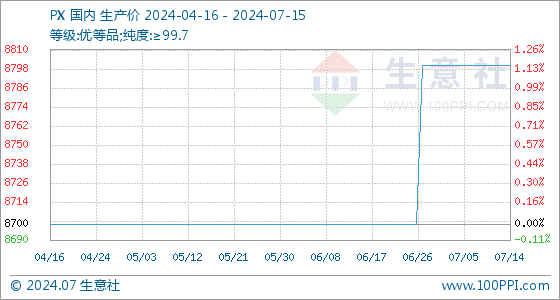 7月15日,生意社PX基准价为8800.00元/吨,与本月初持平。