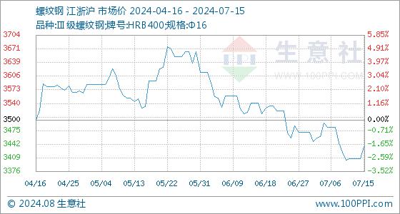 7月15日生意社螺纹钢基准价为3406.22元/吨
