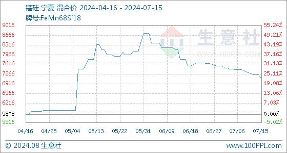 7月15日生意社锰硅基准价为7240.00元/吨