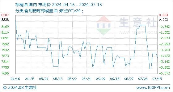 7月15日生意社棕榈油基准价为7906.00元/吨