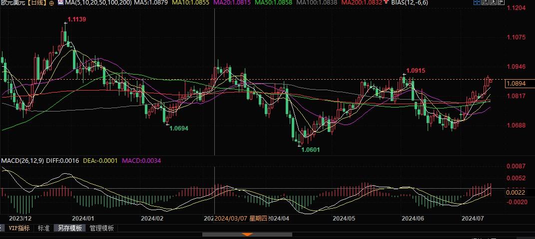 北京时间7月15日13:47,欧元兑美元报1.0893/94