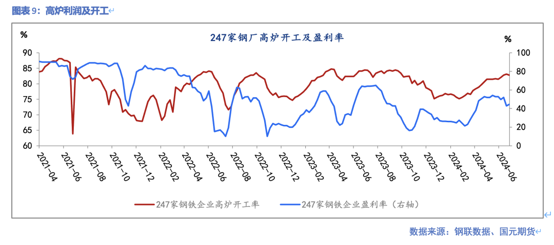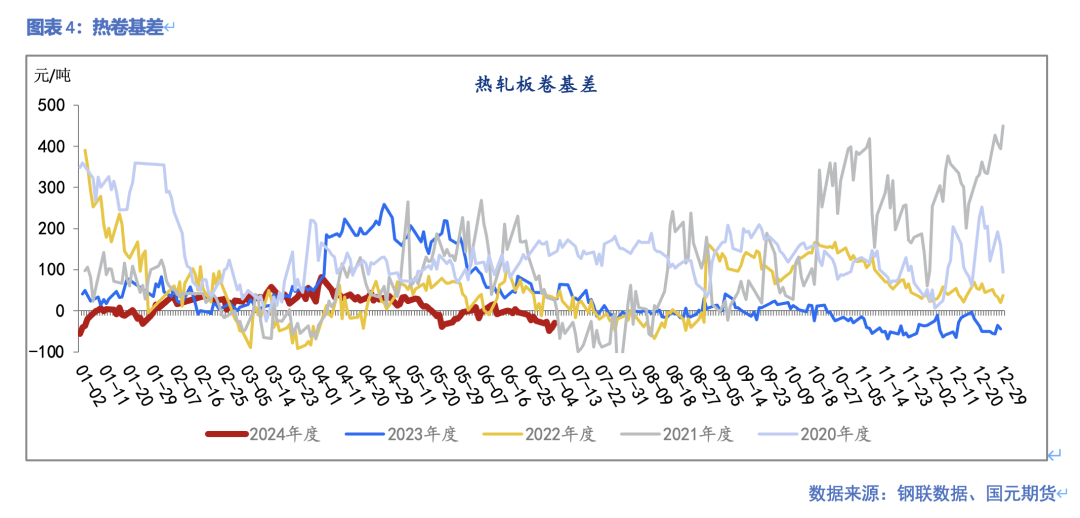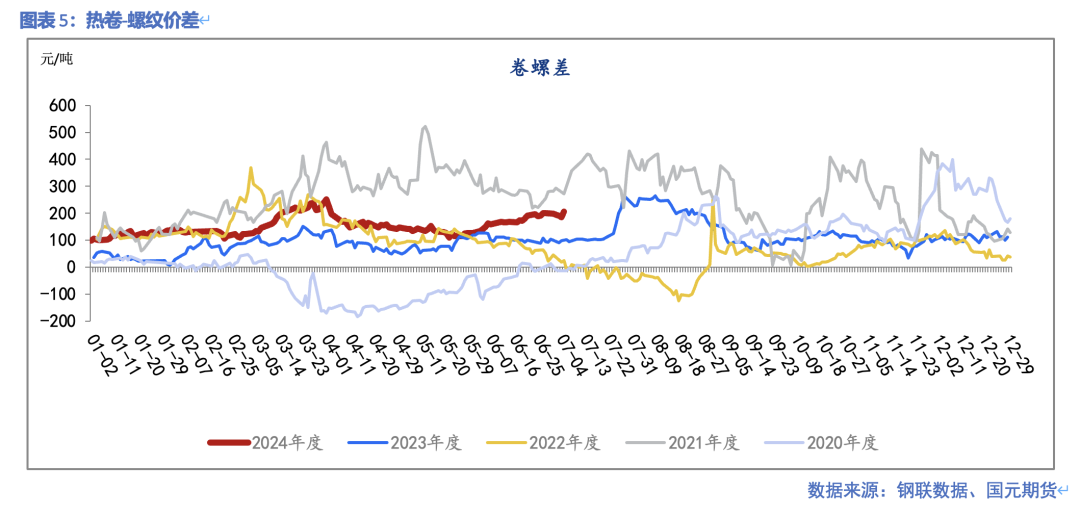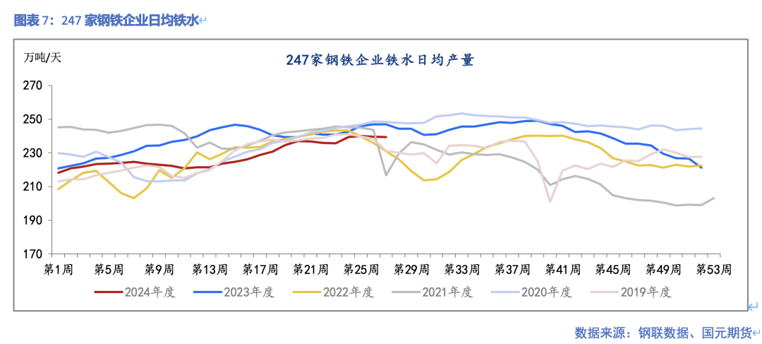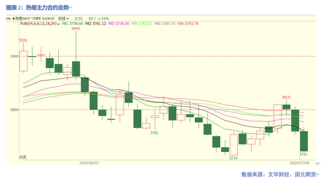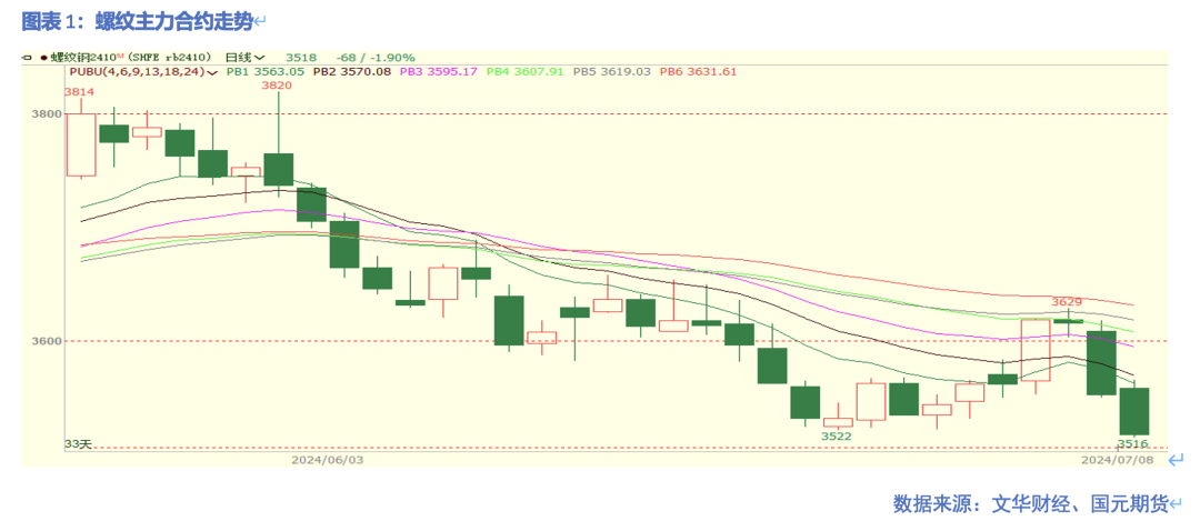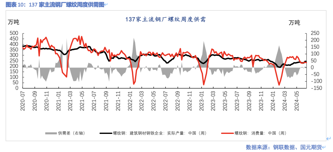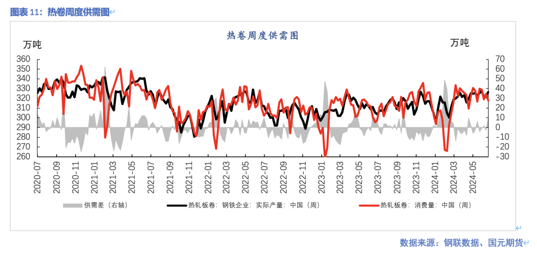 需求方面,7月仍处于传统淡季,南方市场梅雨季节到来,长三角、珠三角雨水不断;北方市场高温持续,建筑市场需求下滑,混凝土产能利用率及水泥出库量连续走低。7月家电排产下滑,制造业用钢面临边际走弱。