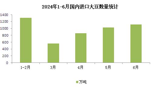 供应面:2024年6月,中国进口大豆1111.4万吨,环比增加8.73%,同比增加8.22%。1-6月,中国进口大豆4848.1万吨,同比减少2.2%。7月份我国大豆进口到港量约1100万吨,原料进口大豆数量不断增加,国内豆粕行情不断走低。