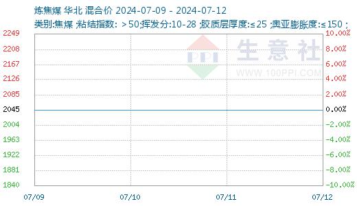 据生意社商品分析系统显示,炼焦煤价格本周暂稳运行。7月9日到7月12日,炼焦煤均价为2045元/吨。