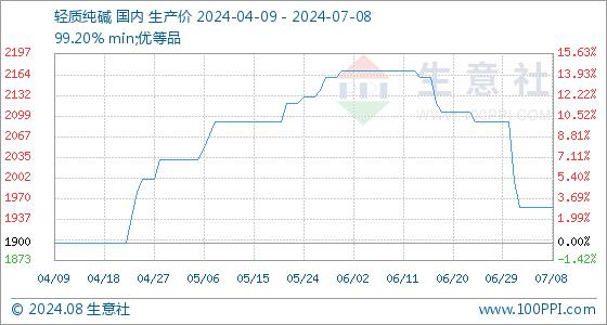 7月8日生意社轻质纯碱基准价为1956.00元/吨