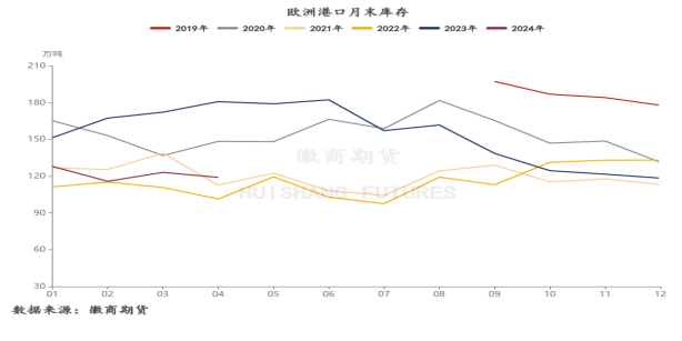 今年以来,海外经济呈现出复苏态势,下游原纸厂家进入补库周期,对原材料的需求更为强劲,欧洲纸浆联合会(UTIPULP)发布2024年4月报告显示,2024年4月,欧洲化学浆(含漂白浆,半漂白浆,以及未漂白浆)消费量合计867,056吨,较去年的726,750吨增加19.3%;此外纸浆供应商受制于罢工、检修等不利因素,二季度供应量存在缩减预期,叠加需求强劲,欧洲纸浆港口库存去库趋势明显,据Europulp公布的数据显示,2024年4月欧洲木浆港库1,189,881吨,较上月的1,230,897吨下滑3%,较去年同期的1,808,554吨减少34%。