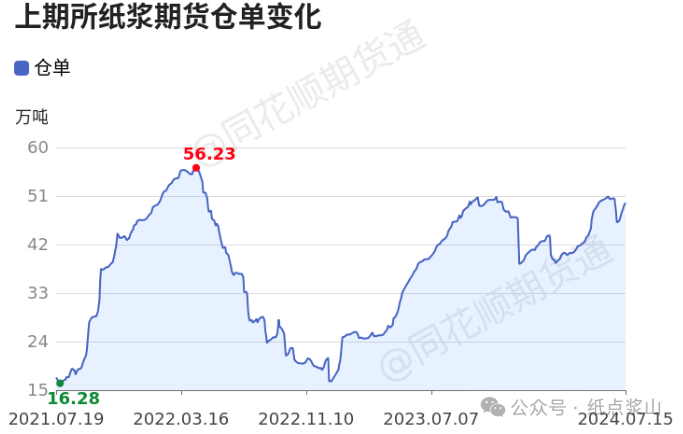 历史数据显示,自2021年1月29日以来,纸浆期货库存最高为53.69万吨,最低为10.53万吨,库存均值录得33.60万吨,当前库存(43.26万吨)较均值增加28.78%。