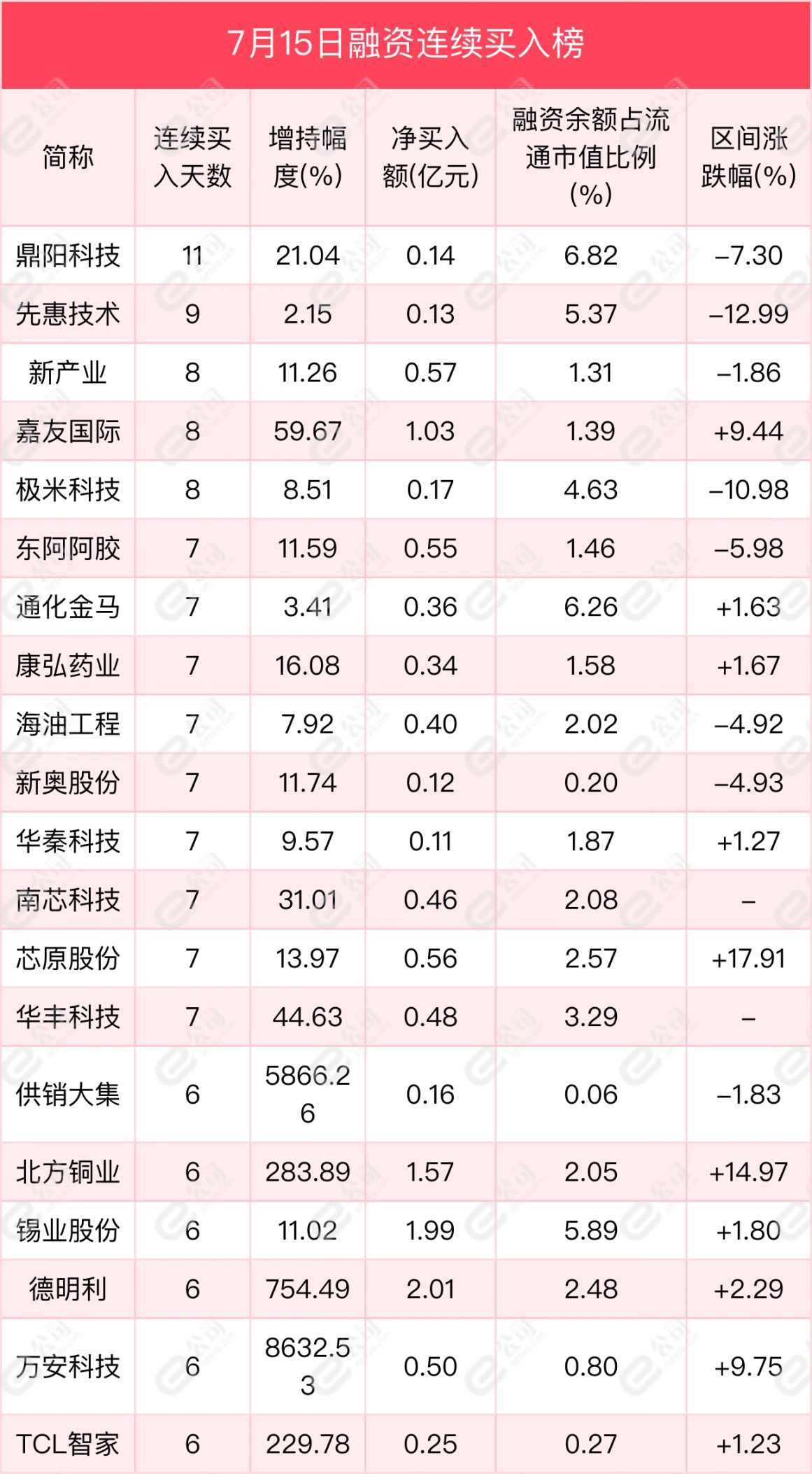 从连续买卖来看,鼎阳科技、先惠技术、新产业获融资连续净买入天数居前,分别为11天、9天、8天,期间净买入额分别为0.14亿元、0.13亿元、0.57亿元,期间增持幅度分别为21.04%、2.15%、11.26%。