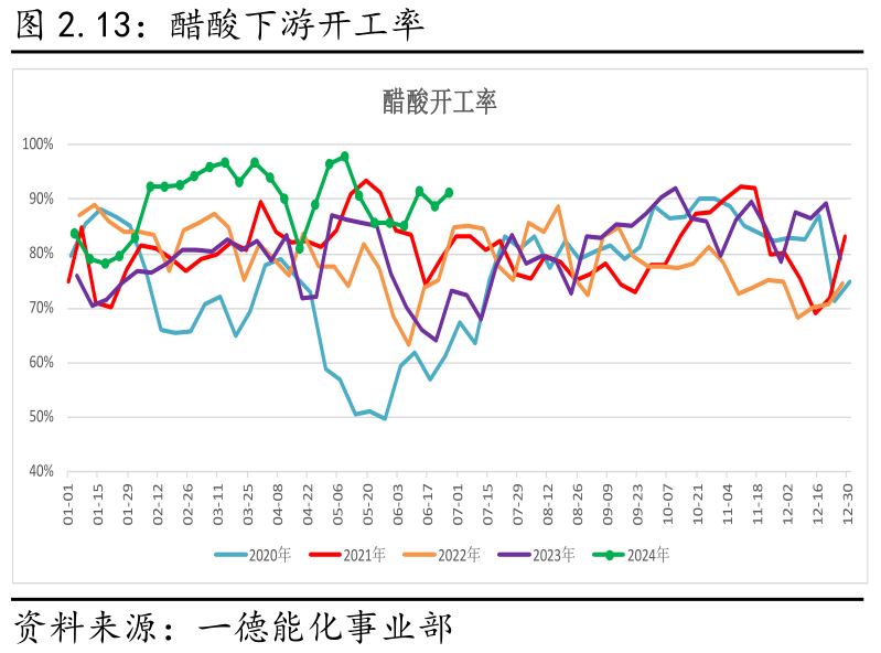 传统下游方面,甲醛开工春节前后大降,但之后开工迅速回升,目前仍处于历史同期高位水平;二甲醚开工持续低迷运行,预计全年难有起色;MTBE开工3-4月先跌后涨,上半年均处于历史同期高位水平;醋酸开工上半年整体高位震荡,目前处于历史同期高位水平。考虑到三季度气温上升、终端消费疲弱及出口抑制等因素的影响,7-8月份传统下游大概率进入消费淡季,9月伴随着金九银十前中下游补库周期到来,需求或有再度回升可能。