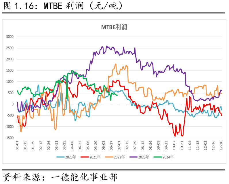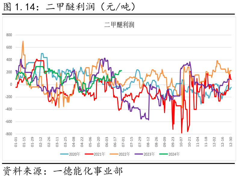 传统下游方面,2024年上半年,MTBE利润表现先扬后抑,甲醛、醋酸、二甲醚利润则不温不火,整体维持震荡运行状态。总体看,传统下游利润目前大多处于历史中等及以下水平,在地产引擎失速、海外需求转弱、利率持续低迷的大背景下,部分行业或已逐渐步入低利润时代。