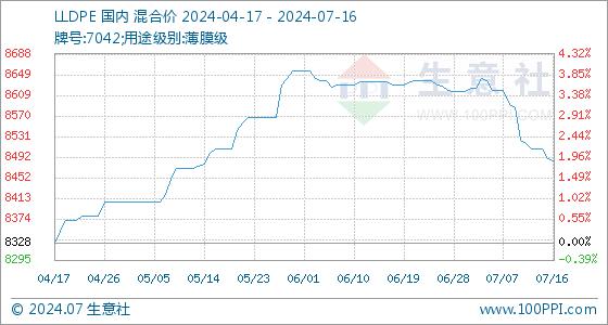 7月16日生意社LLDPE基准价为8490.00元/吨