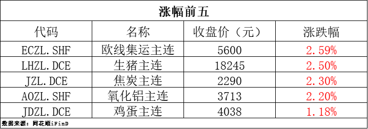 欧线集运主连重回5600点;碳酸锂主连大跌4%,跌破8.8万元/吨