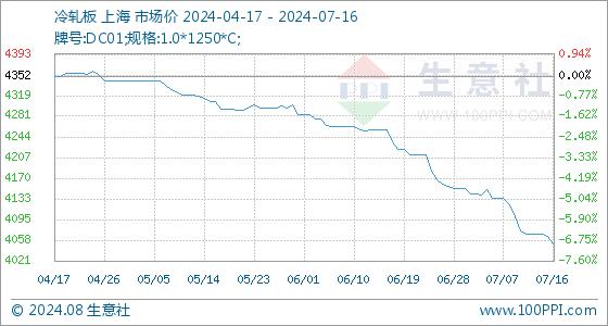 7月16日生意社冷轧板基准价为4065.00元/吨