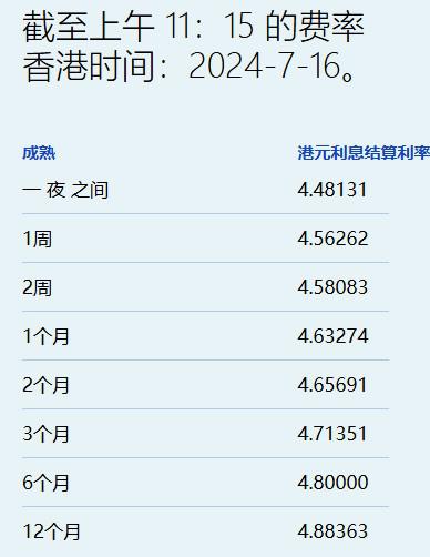 港元短期拆息上扬隔夜拆息升至4.48%创近一周新高