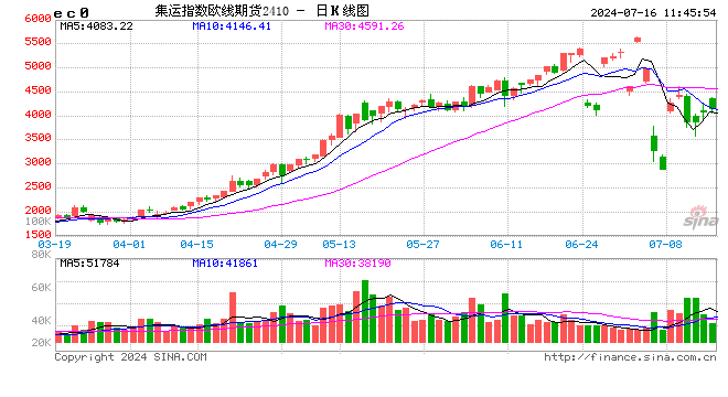 集运指数(欧线)主力合约跳空高开,最高报5800.0点。国投安信期货表示,标的指数的大涨显示7月上旬运价的涨幅落地良好,前期偏低的指数更多是受到甩柜、原定船期推迟的影响。在昨日标的指数大幅上行的支持下,预计基差收敛的力量将推动近月合约出现较好涨幅。但现货报价逐步滞涨,而指数上涨无法改变目前市场对于现货拐点即将到来的预期,因而盘面可能会在短时间内完成基差收敛后,重新回到震荡博弈的走势。远月合约仍将主要以地缘扰动为主,中东局势持续焦灼。但在出现实质性结果前,停火预期预计将持续施压远月。