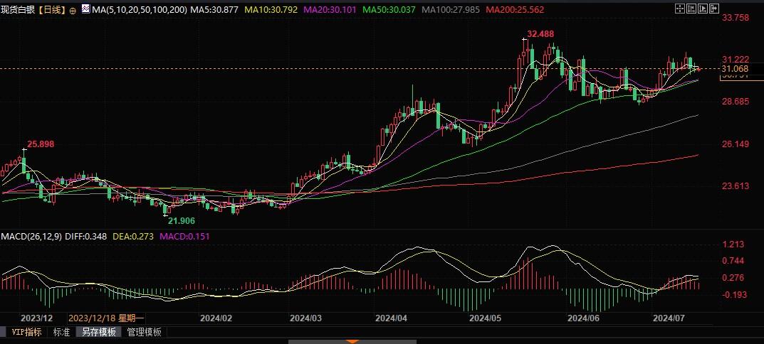 北京时间7月16日13:24,现货白银报30.76美元/盎司