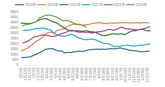 从卓创统计显示,截止2024年7月12日,PTA社会库存为358.3万吨,环比上升4.4万吨。PTA负荷回升,聚酯负荷下滑,PTA转累库。