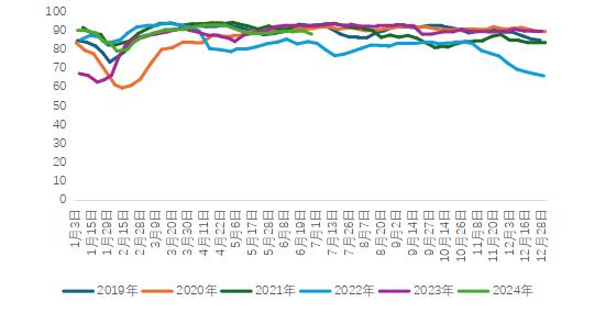 聚酯负荷延续回落。截止2024年7月11日聚酯负荷86.1%,环比回落1.6个百分点,聚酯负荷延续回落。