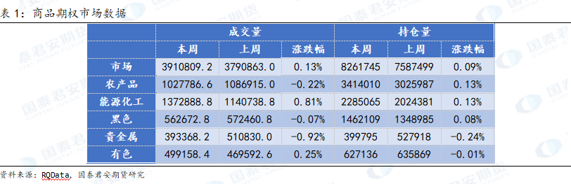 包含单个品种图表分析的完整版请参照对客平台产品《商品期权周度分析报告》