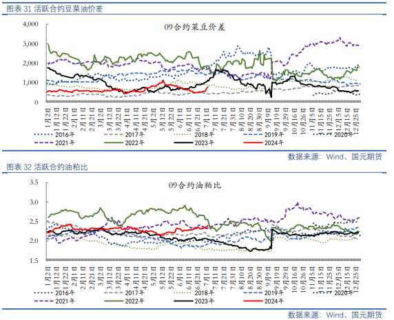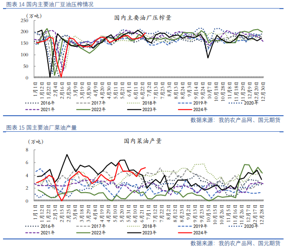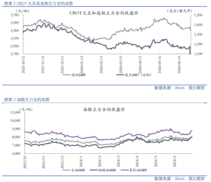 操作上,豆粕2409合约参考区间3200-3500,菜粕2409合约参考区间2450-2750。