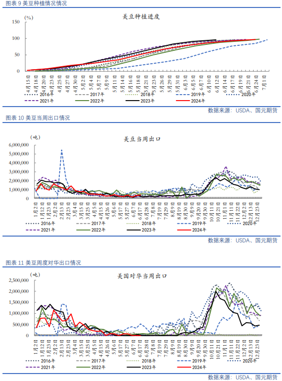【作物进展周报:美国大豆基本都已出苗开花率20%】美国农业部作物进展周报显示,截至6月30日,美国大豆出苗率为95%,上周同期为90%,去年同期97%,五年同期均值93%。大豆开花率为20%,去年同期8%,五年同期均值20%。