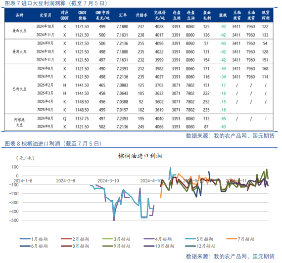 操作上,豆油2409合约参考区间7600-8200,棕榈油2409合约参考区间7600-8200,菜籽油2409合约参考区间8200-9000。