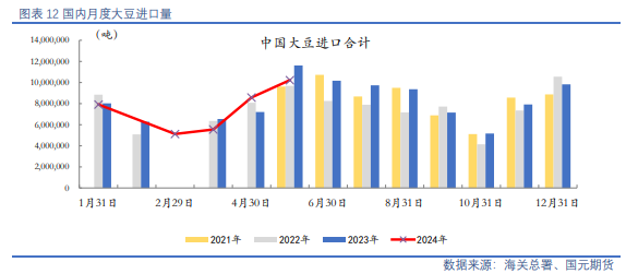 海关数据显示,2024年5月份我国进口大豆1022万吨,比4月份的857万吨增加19%,但是比去年5月份的1157万吨下降12%。1-5月我国大豆进口总量为3737万吨,比去年同期的3951万吨下降5.4%。2024年5月份我国进口食用植物油(不含棕榈油硬脂)55.8万吨,比4月份的49.4万吨增加13%。1-5月我国食用植物油进口总量286万吨,比去年同期的373.6万吨下降23.4%。