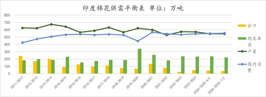 24/25年度全球消费环比上调5.6万吨,其中印度消费上调6.5万吨,巴基斯坦消费下调6.6万吨,24/25年度全球消费有所恢复,但考虑到全球经济增长预期,以及大国博弈、地缘冲突等,新年度仍然不是消费大年。
