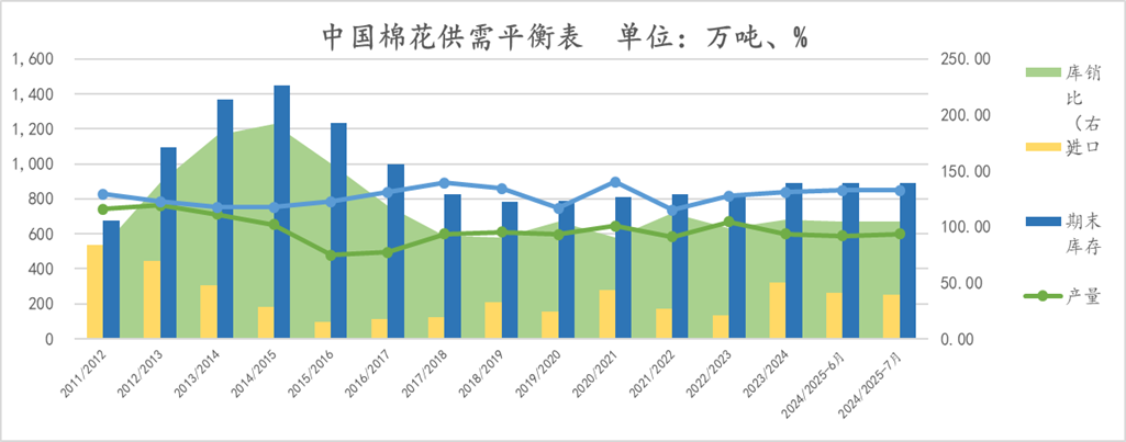 全球24/25年度棉花进口环比下调7.8万吨,其中中国进口下调10.9万吨至250.4万吨,较上年减少71.8万吨;巴基斯坦进口增加4.3万吨。