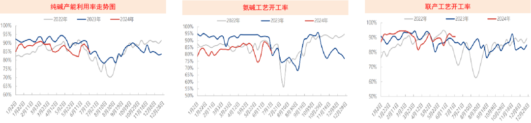 截至7月4日,纯碱综合产能利用率84.77%,其中氨碱产能利用率 80.66%,联产产能利用率 90.69%,14 家年产能百万吨及以上规模企业整体产能利用率 84.97%