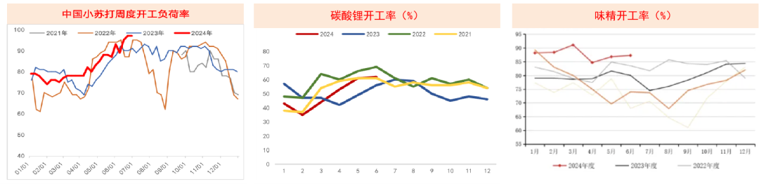 2024年与去年相比,小苏打和味精的开工率有所提高碳酸锂的产量也实现了显著增长。